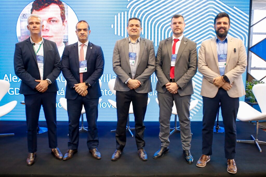 Ricardo Bittencourt (Biotic), Osório Coelho (Mcti), Anderson Correia (IPT), Alexandre Villain (Secti), Leonardo Reisman (FAPDF). Crédito: Davidyson Damasceno / IPT