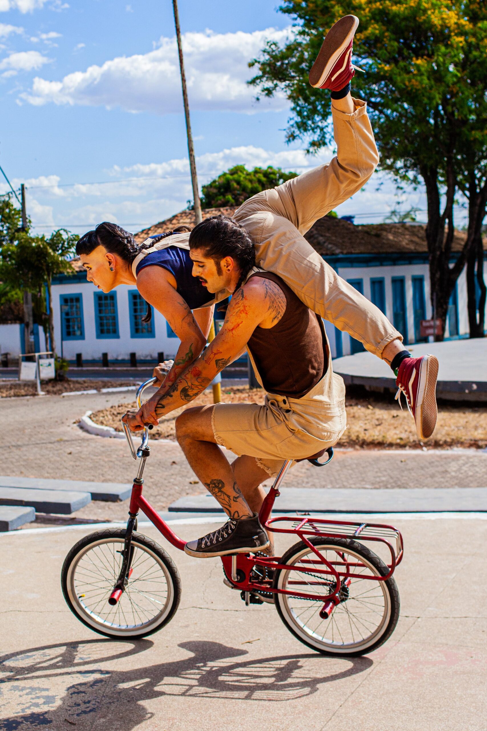 A bicicleta é o elemento central da cena. Segundo a artista circense e coordenadora do projeto, Drisana Alarcão, a escolha não é por acaso: