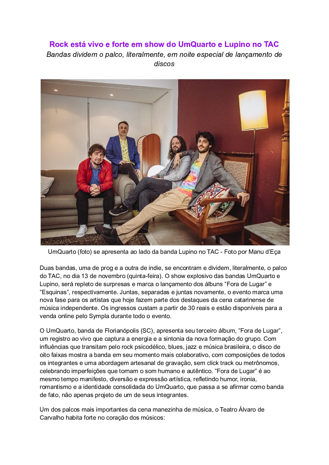 Rock está vivo e forte em show do UmQuarto e Lupino no TAC