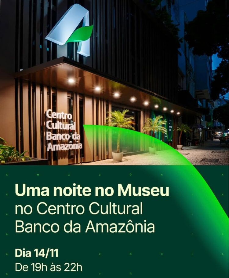 O Centro Cultural do Banco da Amazônia passa a integrar oficialmente o circuito “Uma noite no museu”, promovido pela Secretaria de Cultura do Pará (Secult). Nesta sexta-feira, 14 de novembro, o espaço estará aberto para visitação noturna das 18h às 22h, com entrada gratuita, ampliando ainda mais a cena cultural de Belém em pleno clima de COP30.