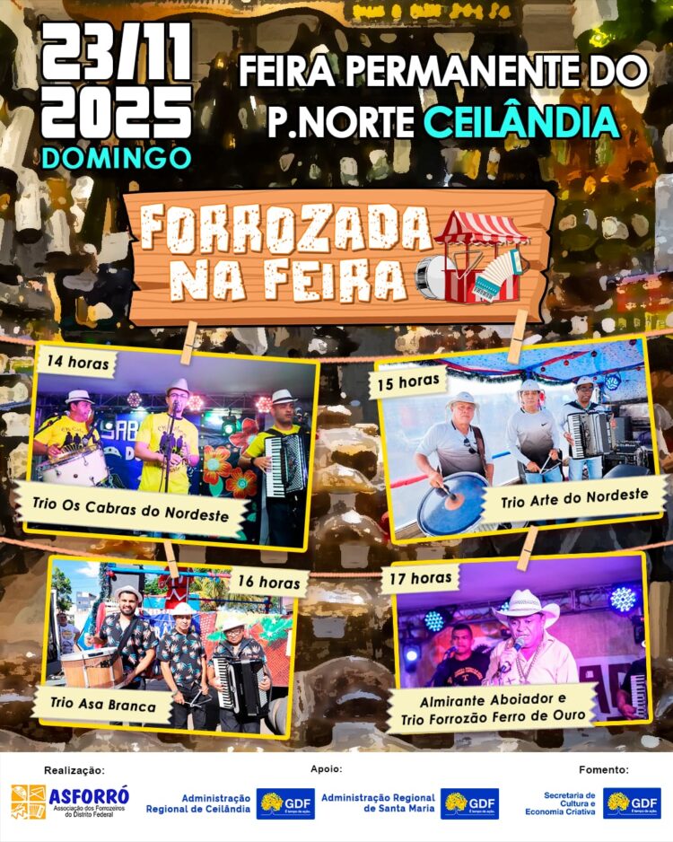 A coordenação destaca que “Ceilândia tem uma alma profundamente nordestina, e as feiras são espaços de resistência cultural. A Forrozada na Feira reafirma esse pertencimento e reúne famílias em torno da música e da tradição”.
