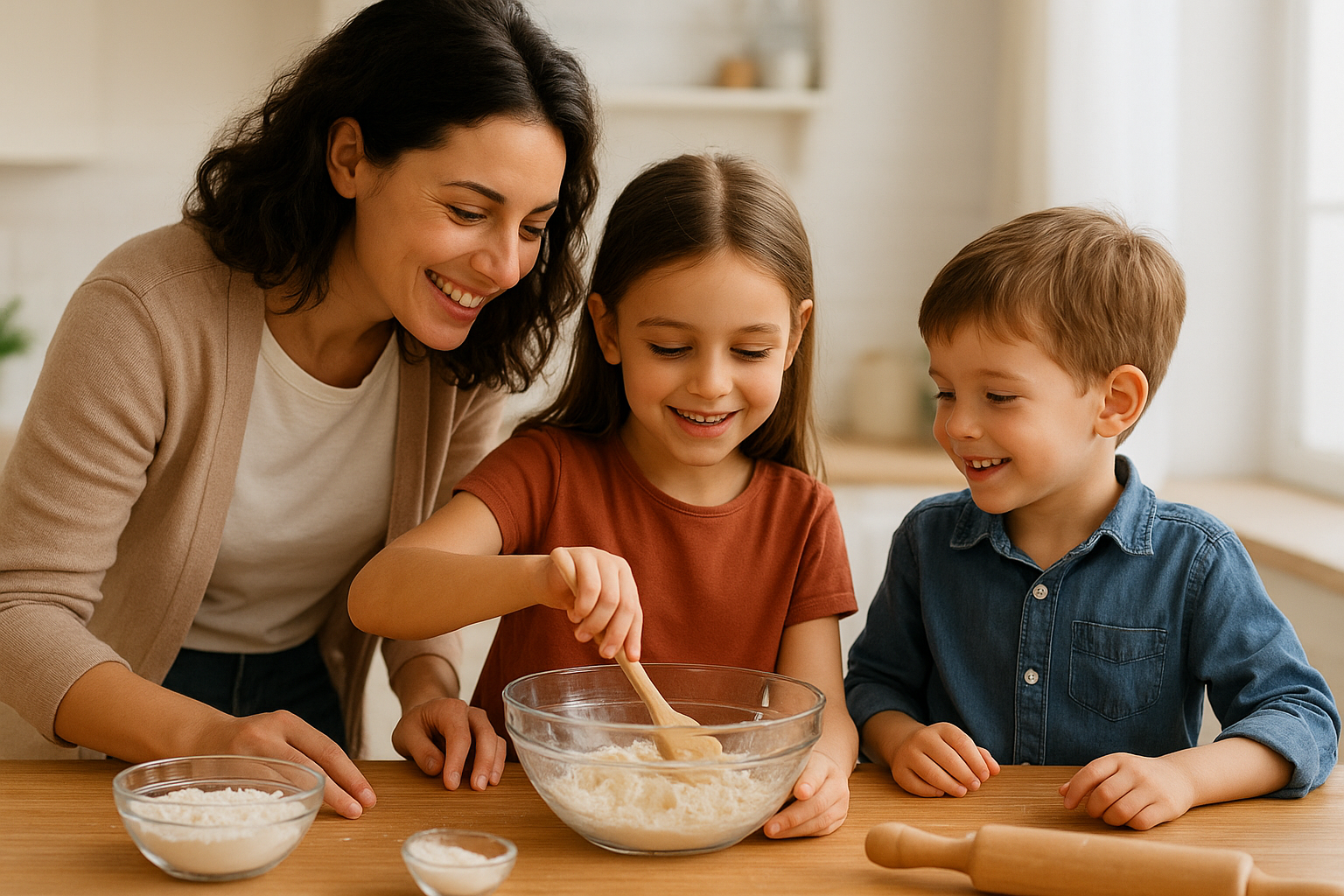 2. O Laboratório na Cozinha Medir ingredientes é matemática; observar o bolo crescer é química; comer junto é afeto. Cozinhar desenvolve a leitura funcional e a paciência.