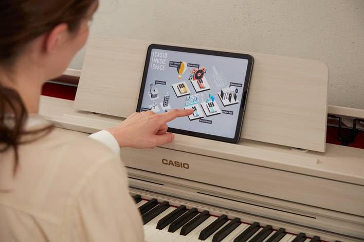Entre eles estão conectividade Bluetooth para áudio e MIDI, além do aplicativo Casio Music Space, que oferece ferramentas de estudo e controle do instrumento por meio da função Piano Remote.