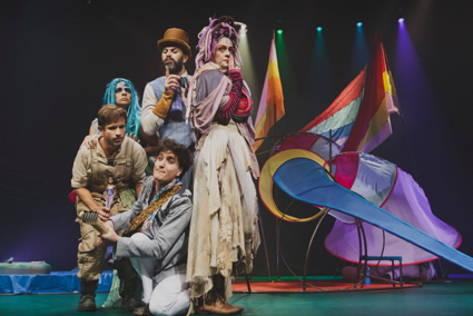 No palco, esse mundo ganha forma com estética vibrante e atmosfera que mistura fantasia, liberdade e espírito comunitário. O cenário interativo criado por Sérgio Marimba dialoga com a iluminação de Aurélio de Simoni e os figurinos de Danielly Ramos, criando um ambiente colorido e sensorial que aproxima o público infantil do universo da peça.