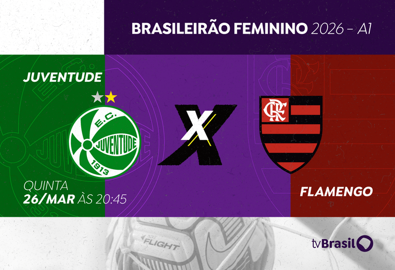 A TV Brasil exibe nesta quinta-feira, 26 de março, o confronto entre Juventude e Flamengo, válido pela quinta rodada da Série A1 do Campeonato Brasileiro Feminino 2026. A transmissão começa às 20h45, com pré-jogo, e a bola rola às 21h, em partida disputada em Caxias do Sul (RS).