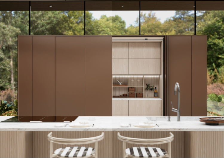 A Marel também aposta no conceito Metamorfose, que propõe soluções multifuncionais e transformações silenciosas no mobiliário, com sistemas embutidos e discretos que ampliam o uso dos ambientes.