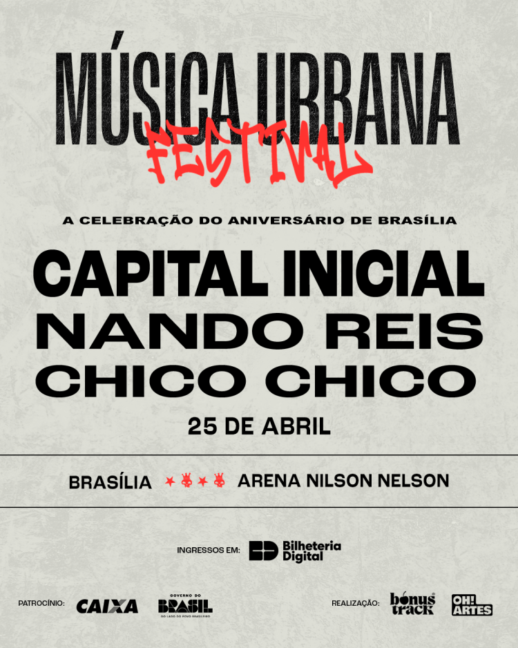O Festival Música Urbana retorna para sua terceira edição no dia 25 de abril, amanhã, a partir das 20h, no Ginásio Nilson Nelson, em Brasília. O evento celebra o aniversário da capital federal reunindo nomes importantes da música brasileira em uma noite dedicada ao rock nacional e às suas diferentes gerações.